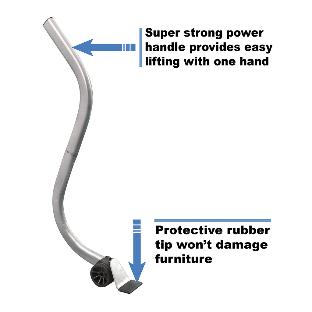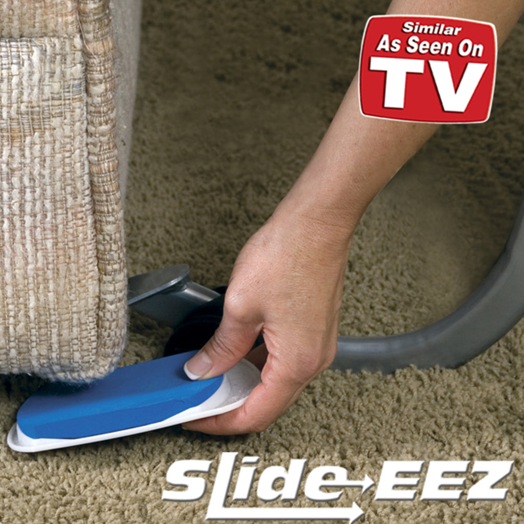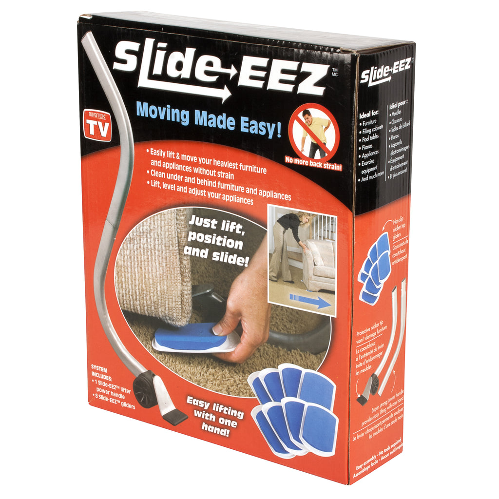 The Slide-EEZ is the easy way to move furniture! Easily lift & move your heaviest furniture and appliances without the strain. The super strong power handle provides easy lifting with one hand and the protective rubber tip won’t damage your furniture. Clean under & behind furniture and appliances and rearrange furniture – all by yourself! Simply lift, position and slide! The Slide-EEZ slides and glides across almost any surface and is ideal for furniture, filing cabinets, pool tables, pianos, appliances, exercise equipment and much more! Assembly is easy – no tools required. Includes: 1 Slide-EEZ lifter power handle and 8 Slide-EEZ gliders.
